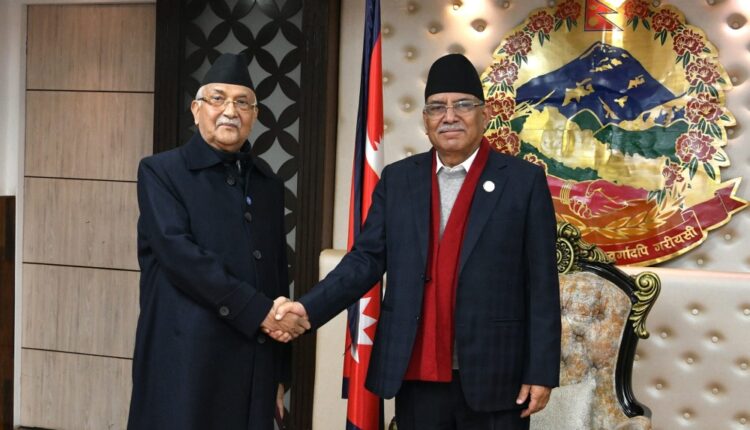 काठमाडौं । सत्ता गठबन्धनमा खटपट परिरहेको बेला प्रधानमन्त्री पुष्पकमल दाहाल प्रचण्ड र नेकपा एमालेका अध्यक्ष केपी शर्मा ओलीबीच आज बिहान भेटवार्ता भएको छ । प्रधानमन्त्री निवास बालुवाटारमा भएको भेटमा समसामयिक राजनीतिबारे छलफल भएको बताइएको छ ।गृह मन्त्रालय पुनः राष्ट्रिय स्वतन्त्र पार्टीलाई दिने कि नदिने भन्ने विषयलाई लिएर सत्ता साझेदार दलहरुबीच विवाद बढेको छ ।