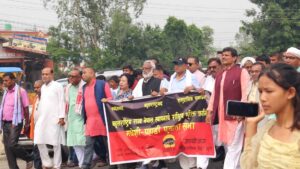काठमाडौं। राष्ट्रिय मुक्ति क्रान्ति अभियानद्धारा सर्लाहीको लालबन्दीमा मधेशी-पहाडी एकता सभा आयोजना राष्ट्रिय मुक्ति क्रान्तिले बोजेनिमा अपर तामाकोशी जलविद्युत पीडितहरूलाई साथ दिदै तत्काल काम रोकेर प्रहरी फिर्ता गर्नुपर्ने विगत ५२४ दिनदेखि विरोध गरिरहेका स्थानीयलाई साथ दिएका थिए ।